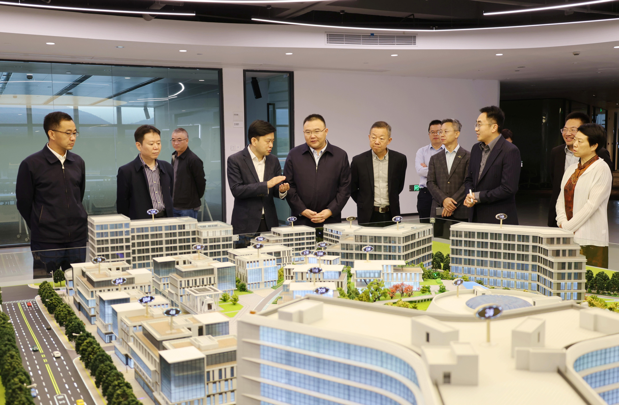 座谈会前,朱斌一行先后走访了浩源创新工坊、众合科技西部科创谷和浙江启尔机电技术有限公司,详细了解园区建设发展、校企合作推进以及企业发展情况。