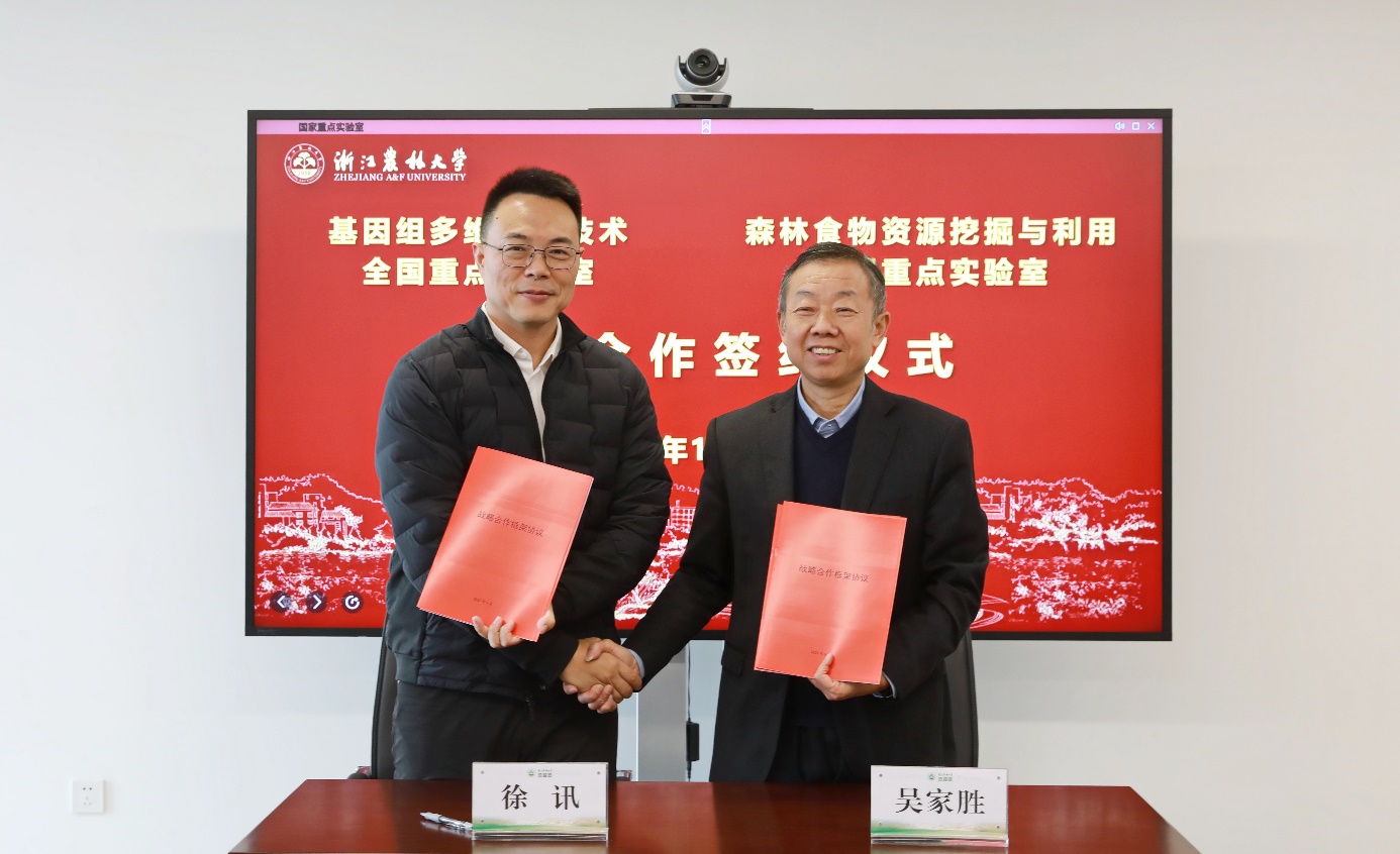 11月21日下午,森林食物资源挖掘与利用全国重点实验室与基因组多维解析技术全国重点实验室战略合作签约仪式在东湖校区全重大楼举行。