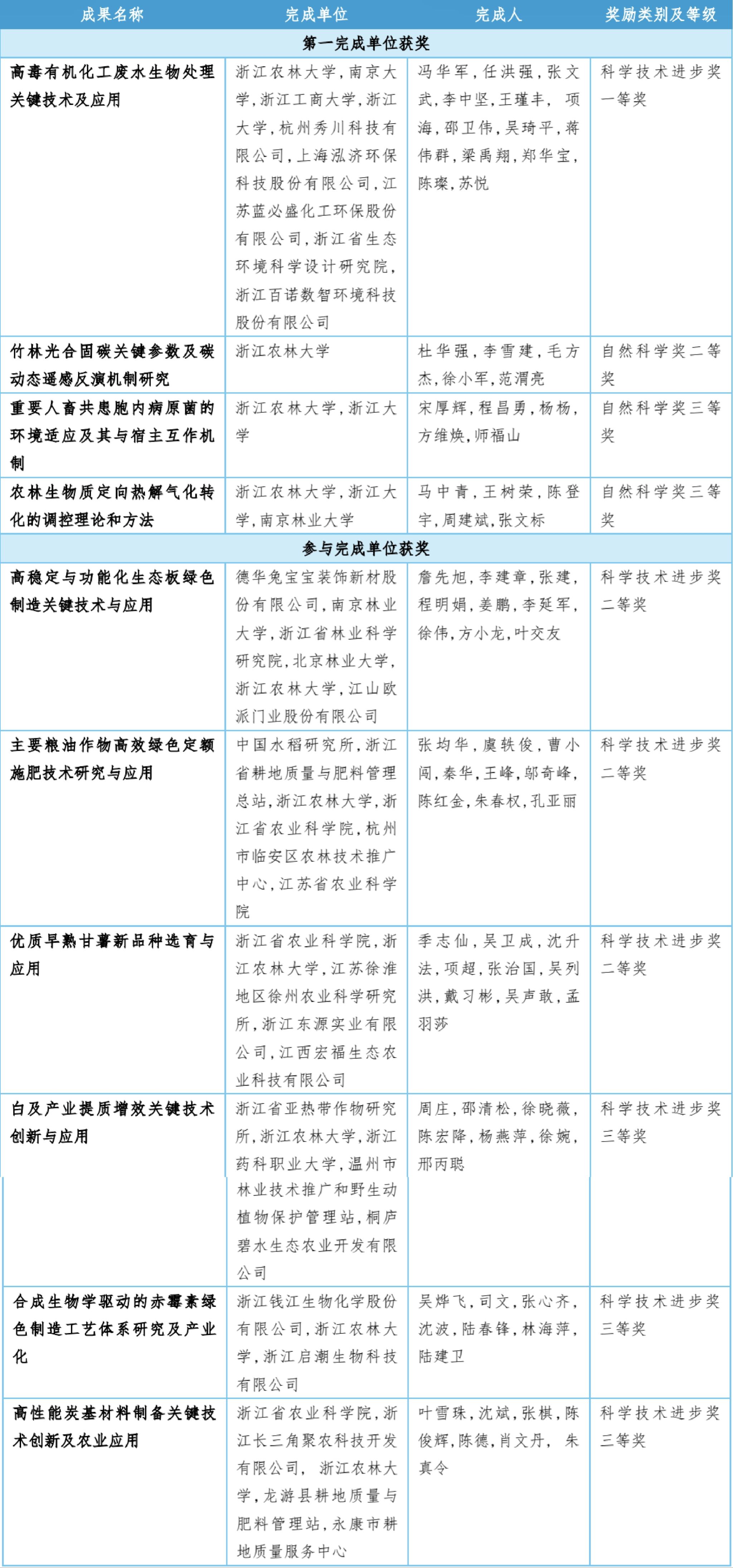 环境与资源学院、碳中和学院杜华强教授团队主持完成的《竹林光合固碳关键参数及碳动态遥感反演机制研究》成果获自然科学奖二等奖。该成果解决了竹林碳固定参数如何反演、碳储量动态如何估算和碳循环过程如何模拟等三个科学问题,形成了完备的竹林碳汇遥感反演理论和方法,为评价中国竹林碳汇功能及服务国家“双碳”目标提供了科学的依据。